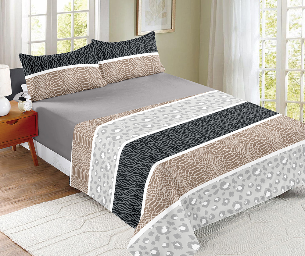 Двусторонний комплект постельного белья из четырех предметов с принтом имеет двусторонний дизайн и предлагает два стиля в одном комплекте, что позволяет вам легко изменить стиль спальни и создать динамичный и многослойный вид. Изготовленный из 100% ультратонкой полиэфирной ткани из микрофибры, он отличается нежностью и мягкостью, а также превосходной воздухопроницаемостью. Изысканный принт отличается яркими цветами, устойчивыми к выцветанию, что делает его пригодным для частой стирки. Приталенный дизайн простыни позволяет легко надевать ее, создавая аккуратный и естественный общий вид. В комплект из четырех предметов входят простыня на резинке, пододеяльник и наволочки, которые удовлетворят ваши повседневные домашние потребности. Двусторонние узоры легко преобразят атмосферу вашей спальни, что подойдет тем, кто ценит разнообразные стили и практичность, добавляя яркости и комфорта во время сна.